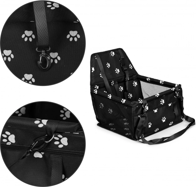 Nešiklis aprūpintas dirželiais, kuriuos galima pritvirtinti prie automobilio sėdynių atlošų galvos atramų. Taip jūsų augintinis išliks saugioje padėtyje važiavimo metu.