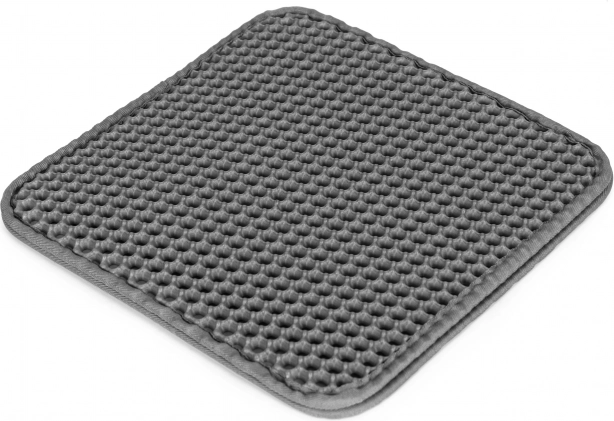 Praktiškas dvisluoksnis kačių tualeto kilimėlis elegantiškos pilkos spalvos, prekės ženklas PETSI, palaiko švarą aplink tualetą. Viršutinis tinklelio sluoksnis sulaiko išbyrėjusias kraiko granules, jos nukrenta į vidų ir lengvai išpilamos. Kilimėlis yra neslystantis, patvarus, saugus letenėlėms ir lengvai valomas.