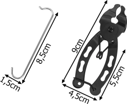 Praktiškos replės greitųjų grandinės jungčių atjungimui ir sujungimui, papildytos grandinei skirtu kabliuku, kad servisavimo metu būtų išlaikytas įtempimas. Patvari konstrukcija, ergonomiška rankena ir universalus pritaikymas daugumai dviračių grandinių užtikrina greitą ir švelnią priežiūrą be komponentų pažeidimo rizikos.