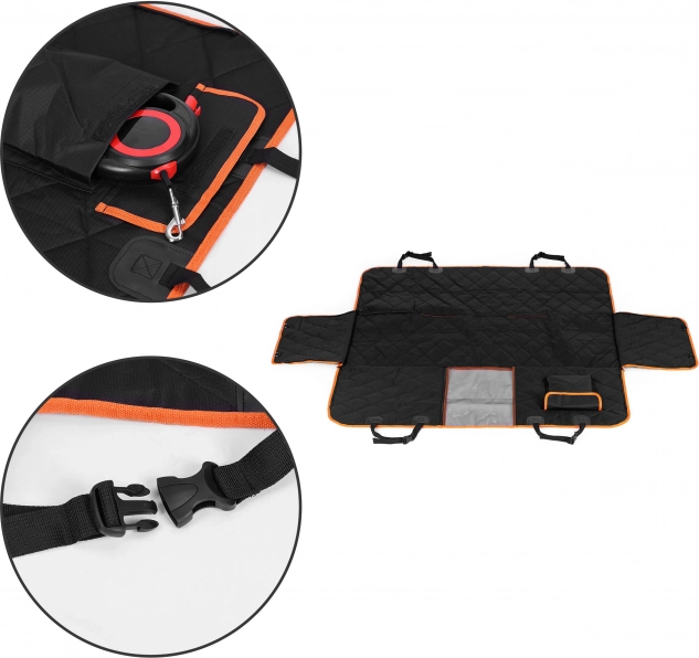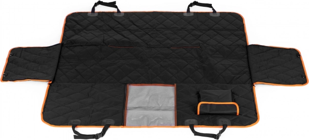 Ieškote patikimos interjero apsaugos keliaujant su šunimi? Šis PETSI galinės sėdynės uždangalas yra universalaus dydžio ir dengia visą galinę sėdynę, įskaitant priekinių sėdynių galines dalis. Patvari vandeniui atspari medžiaga saugo nuo drėgmės, purvo ir plaukų, o neslystanti apatinė dalis ir reguliuojami diržai su sagtimis tvirtai laiko uždangalą vietoje.