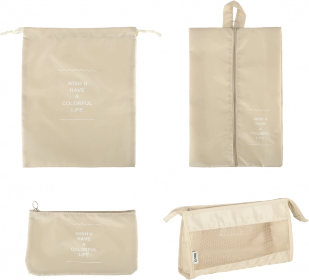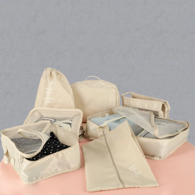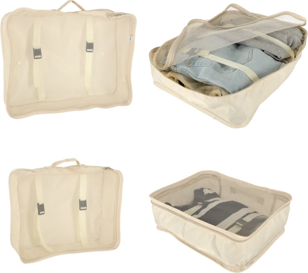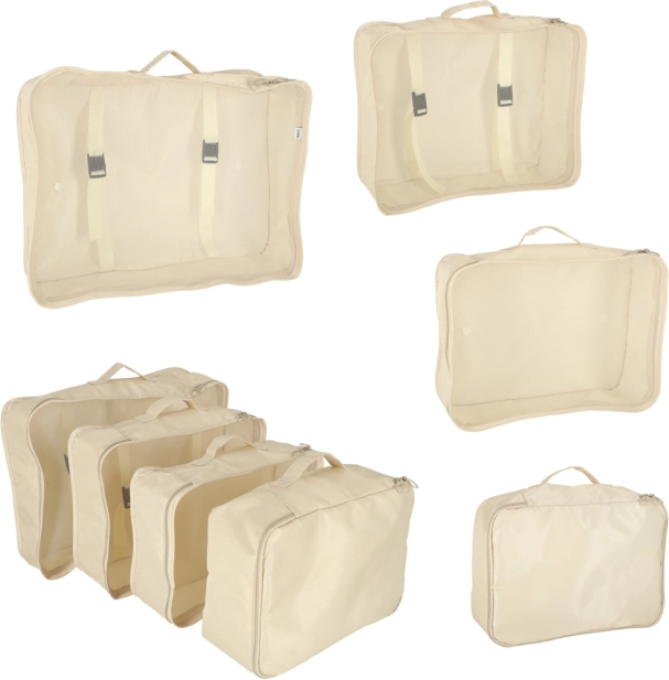 Padarykite savo bagažą tvarkingą visam laikui. Šis elegantiškos smėlio spalvos 8 dalių kelioninių tvarkyklių rinkinys siūlo keturias drabužių kubines pakuotes, batų krepšį, kosmetinę, maišelį su sutraukimu ir mažą kišenę smulkmenoms. Dėl lengvo ir patvaraus poliesterio audinio tvarkyklės yra lengvai valomos, atsparios nešvarumams ir puikiai tinka tvarkingam pakavimui kelionėse ir kasdieniam naudojimui.