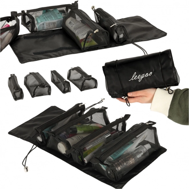 Sulankstomas kelioninis krepšys tualeto reikmenims siūlo išmanų sprendimą asmeninių daiktų organizavimui kelionėse dėl didelės talpos ir praktiško dizaino.