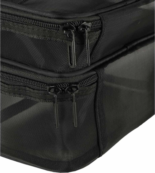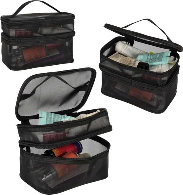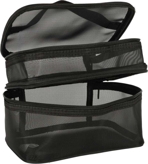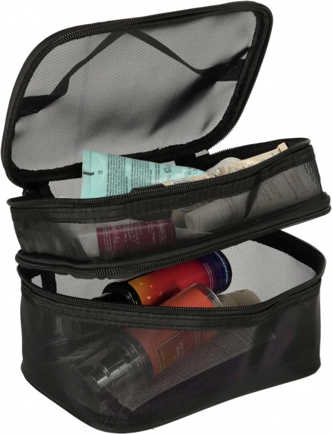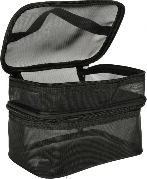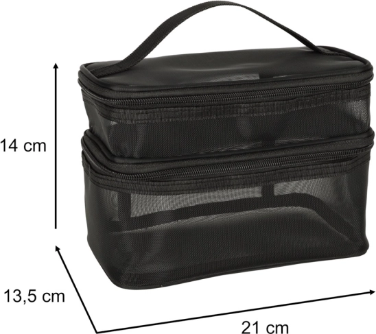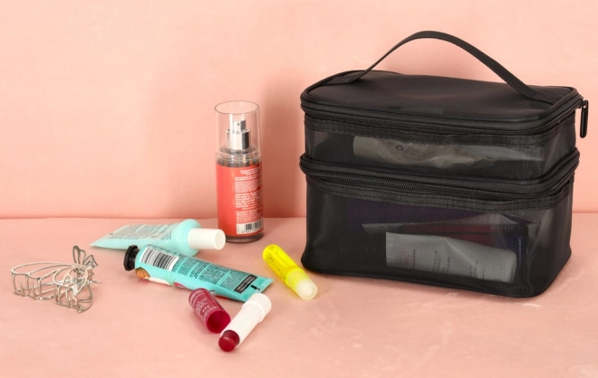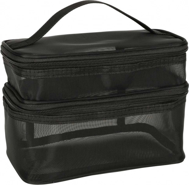 Kelioninis kosmetikos krepšys – būtinybė kiekvienai kelionei. Dviaukštė konstrukcija leidžia tvarkingai laikyti ir aiškiai matyti kosmetikos priemones. Dvikryptis užtrauktukas užtikrina saugumą ir patogumą naudojant. Krepšys pagamintas iš kvėpuojančios medžiagos, todėl lengva rasti laikomus produktus.