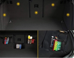 Mūsų bagažinės tinklelis yra idealus sprendimas tvarkai jūsų automobilyje išlaikyti. Dėl kibiojo velcro užsegimų jį galima lengvai pritvirtinti reikiamoje vietoje ir sukurti praktišką pertvarą, kuri išlaikys jūsų daiktus vietoje.