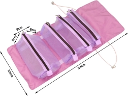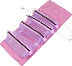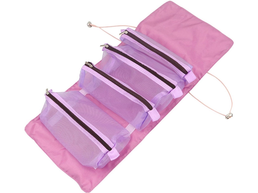 Praktiškas kelioninis kosmetikos organizatorius su keturiomis išimamomis kišenėmis su užtrauktuku ir kabinimo galimybe. Dėl permatomų skyrelių viskas aiškiai matoma, organizatorių lengva susukti, jis užima minimaliai vietos. Idealu rankinei ir lagaminui – tvarka, greita prieiga ir saugus kosmetikos bei smulkmenų laikymas.