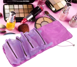Daugiau jokios netvarkos kosmetinėje. Šis 4 viename susukamas kosmetikos organizatorius siūlo keturias erdvias, permatomas kišenes su užtrauktuku, kurias dėl lipnios juostos galima išimti ir pergrupuoti pagal poreikį. Susukus sutvirtinamas elastiniais dirželiais ir tvirtai laikosi.