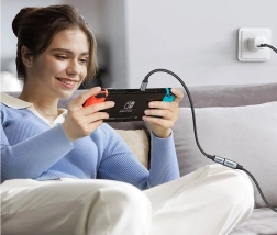 - Įrenginiai su USB‑C prievadu (telefonai, planšetės, nešiojamieji kompiuteriai, konsolės)