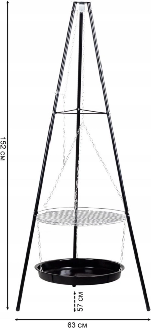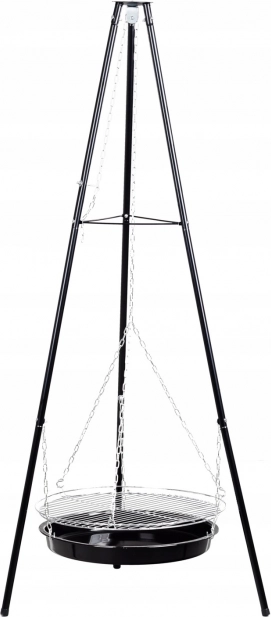 Dėl stabilios trikojo konstrukcijos grilis yra saugus ir tinkamas naudoti lauke – tiek sode, tiek stovyklaujant.
