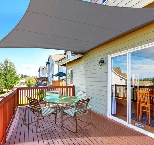 Saulės tentas pagamintas iš kokybiškos medžiagos, kuri veiksmingai blokuoja saulės spindulius ir sumažina temperatūrą po tentu.