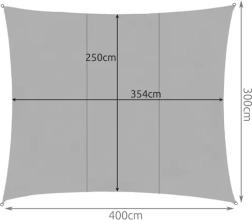 Stačiakampės formos 4 × 3 m užtamsinimo tentas sukuria malonų mikroklimatą ir sumažina temperatūrą poilsio zonoje. Kokybiškas poliesteris su PU danga atsparus drėgmei ir pelėsiui, o po lietaus greitai džiūsta. Neutrali pilka spalva lengvai dera prie bet kokio eksterjero.