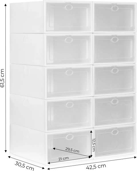 Patvarus plastikas yra lengvas, lengvai valomas, o dėžutes galima saugiai dėti vieną ant kitos. Taip gausite daugiau laikymo vietos mažame plote ir puikią avalynės apžvalgą.