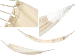 Mėgaukitės poilsiu gryname ore patogiame, iš patvarios tekstilės pagamintame hamake. Dėl tvirtos medvilnės su poliesterio priemaiša, maksimalaus 200 kg leistino svorio ir praktinio krepšio jis puikiai tinka sodui, terasai ir kelionėms. Hamaką lengvai pakabinsite su pridedamomis virvėmis, o po naudojimo greitai susuksite į kompaktišką dėklą.