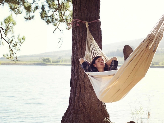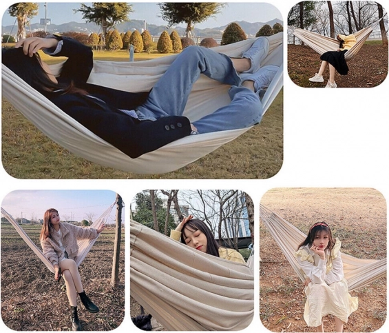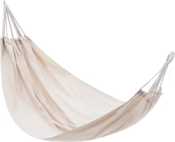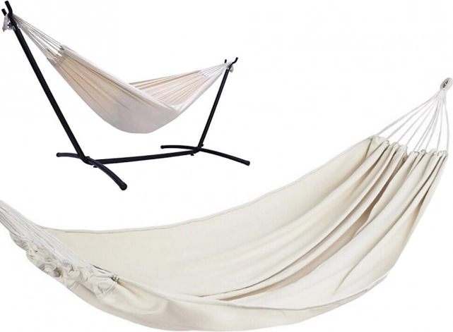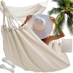 Šis erdvus hamakas suteiks puikią vietą atsipalaiduoti po darbo ar savaitgalio poilsiui. Kvėpuojanti drobinė medžiaga maloniai apgaubia kūną, kartu išlieka pakankamai tvirta ir stabili. Dėl kompaktiško dėklo ir nedidelio svorio hamaką lengvai pasiimsite į sodybą, prie ežero ar į parką.