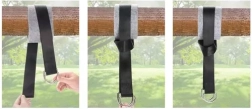 Pilnas rinkinys saugiam hamako, sūpynių arba braziliškos kėdės pakabinimui. Įeina viskas, ko reikia greitam montavimui be gręžimo: 2 patvarūs nailoniniai virvės gabalai (152 cm), 2 karabinai, 2 tarpinės, jungtis ir laikymo maišelis. Universalus naudojimas, paprastas montavimas ir iki 150 kg apkrova.