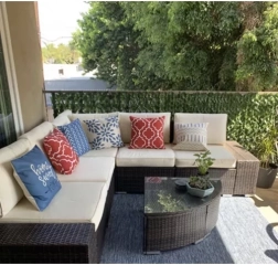 Ši dirbtinė gebenės tvorelė idealiai tinka kaip vizualinė uždanga balkonui, terasai ar tvorai. Realistiškas lapų efektas suteiks eksterjerui malonios žalumos be rūpesčių – be laistymo, tręšimo ir kirpimo. Konstrukcija iš kokybiškų medžiagų yra atspari oro sąlygoms ir lengvai palaikoma švari.