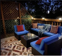 Poliesterio ir PP derinys užtikrina ilgą tarnavimo laiką ir atsparumą oro sąlygoms balkonuose, terasose ir soduose.