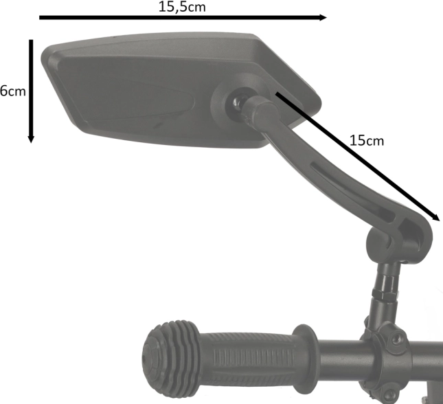 Veidrodėliai turi 15 cm ilgio laikiklį, kuris leidžia matyti plačiai, o jų išmatavimai yra 15,5 cm x 6 cm. Aukštos kokybės plastikas užtikrina ilgą gaminio tarnavimo laiką.