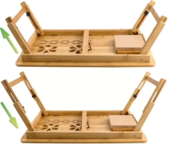 Tvirta konstrukcija iš natūralaus bambuko papildyta praktišku borteliu nuo nuslydimo pakreipus, integruotu stalčiuku pieštukams, ausinėms ar USB laikmenai, taip pat kai kuriuose variantuose yra puodelio laikiklis. Sulankstomos kojelės palengvina nešiojimą ir laikymą. Puikus sprendimas lovai, sofai, taip pat traukiniui, autobusui ar lėktuvui.