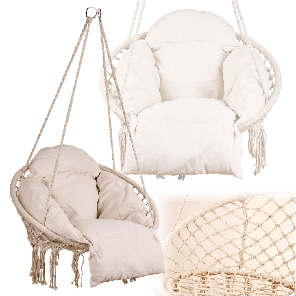 Mėgaukitės tobulu poilsiu pakabinamoje „gandro lizdo“ tipo kėdėje su minkšta pagalve. Tvirta konstrukcija, iki 150 kg keliamoji galia ir 80 cm skersmuo užtikrina komfortą ir stabilumą. Laikui nepavaldi ecru spalva tinka sodui, terasai, balkonui ir interjerui.
