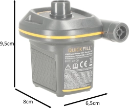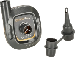 Kompaktiška elektrinė pompa INTEX Quick-Fill su USB 5V/2A greitai pripučia ir išleidžia orą iš čiužinių, baseino ratų ir kitų pripučiamų gaminių. Siūlo dvipusį veikimą, didelį našumą 150 l/min ir universalius antgalius įvairiems vožtuvams. Dėl mažų matmenų idealiai tinka kelionėms ir gali būti maitinama iš įkroviklio, išorinės baterijos ar bet kurio USB prievado.<:/div>