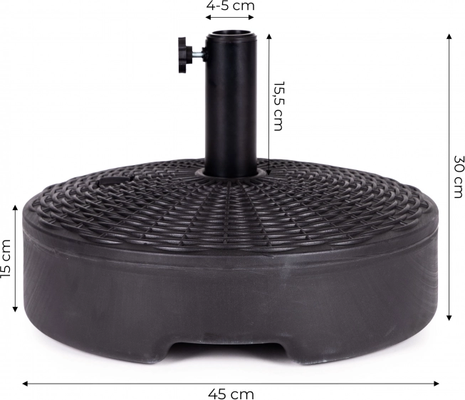 Šis stovas puikiai tinka mažesniems skėčiams. Pagamintas iš patvarios HDPE medžiagos ir siūlo dvi skirtingas skersmens tvirtinimo galimybes.