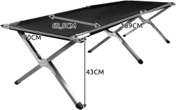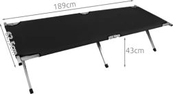 Mėgaukitės patogiu miegu gamtoje ir namuose. TRIZAND lauko lova siūlo patogius matmenis 189 × 70 × 43 cm, tinkančius suaugusiesiems ir paaugliams. Dėl padidinto aukščio miegosite virš žemės sausai ir šiltai, o tvirta metalinė konstrukcija ir 600D Oxford tekstilė užtikrina ilgaamžiškumą.