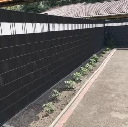 Nepermatoma juoda juosta sukuria elegantišką uždangą, pagerina akustinį komfortą ir apsaugo nuo vėjo. Idealiai tinka segmentinėms tvoroms ir balkonams.