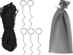 - Stabili konstrukcija: stiklo pluošto lankai, galimybė tvirtinti virvėmis ir kuoliukais