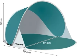 Mėgaukitės patogumu ir šešėliu prie vandens su TRIZAND paplūdimio palapine. Pusiau atvira POP-UP konstrukcija išėmus iš dėklo išsiskleidžia beveik akimirksniu, stabilumą užtikrina elastingi stiklo pluošto lankai. Palapinė patikimai saugo nuo vėjo ir saulės, audinys su UV filtru UPF 30+ sumažina kenksmingos spinduliuotės poveikį. Vandens atsparumas 300 mm suteikia apsaugą nuo silpno lietaus ar dulksnos.