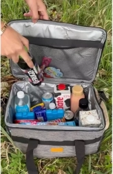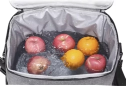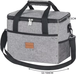 Apgalvotos detalės, tokios kaip dvipusis užtrauktukas, patogūs sujungti laikikliai su lipnia juosta ir reguliuojamas peties diržas, paverčia krepšį praktišku kasdieniu palydovu. Du daugkartinio naudojimo šaldymo įdėklai pakuotėje prailgina vėsinimo laiką kelionėse, piknikuose ir paplūdimyje.