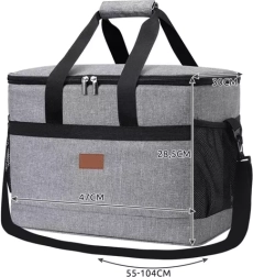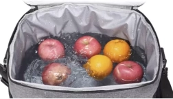 Maksimaliam nešiojimo patogumui krepšys turi tvirtas rankenas su lipduku sujungimui ir nuimamą reguliuojamą diržą (55–104 cm). Dvikryptis užtrauktukas palengvina prieigą, šoninės tinklinės kišenės ir priekinė kišenė talpina smulkmenas. Du pridėti šalčio akumuliatoriai tereikia užšaldyti – jie prailgins vėsinimo laiką krepšio viduje.