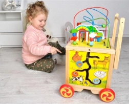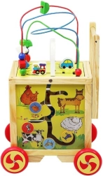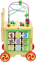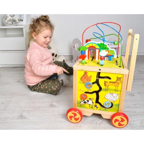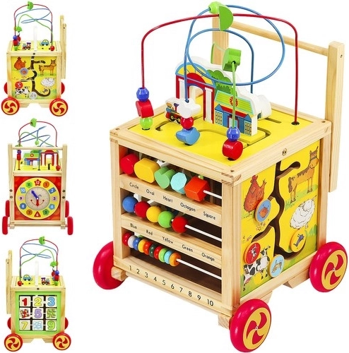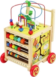 Be vaikštynės, produktas aprūpintas edukaciniu kubu, kuris siūlo įvairias veiklas įgūdžiams lavinti. Kiekviena kubo pusė turi vis kitą žaidimą – nuo raidžių trasos iki spalvoto labirinto.
