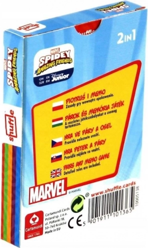 25 kortelių rinkinys su veikėjais iš televizinių serialų „Spidey ir super draugai“, leidžiantis žaisti du kortų žaidimus – Juodąjį Petrą ir Memo, kurie lavina mažiausių vaikų loginį mąstymą. Žaidimo tikslas – rasti kuo daugiau porų.