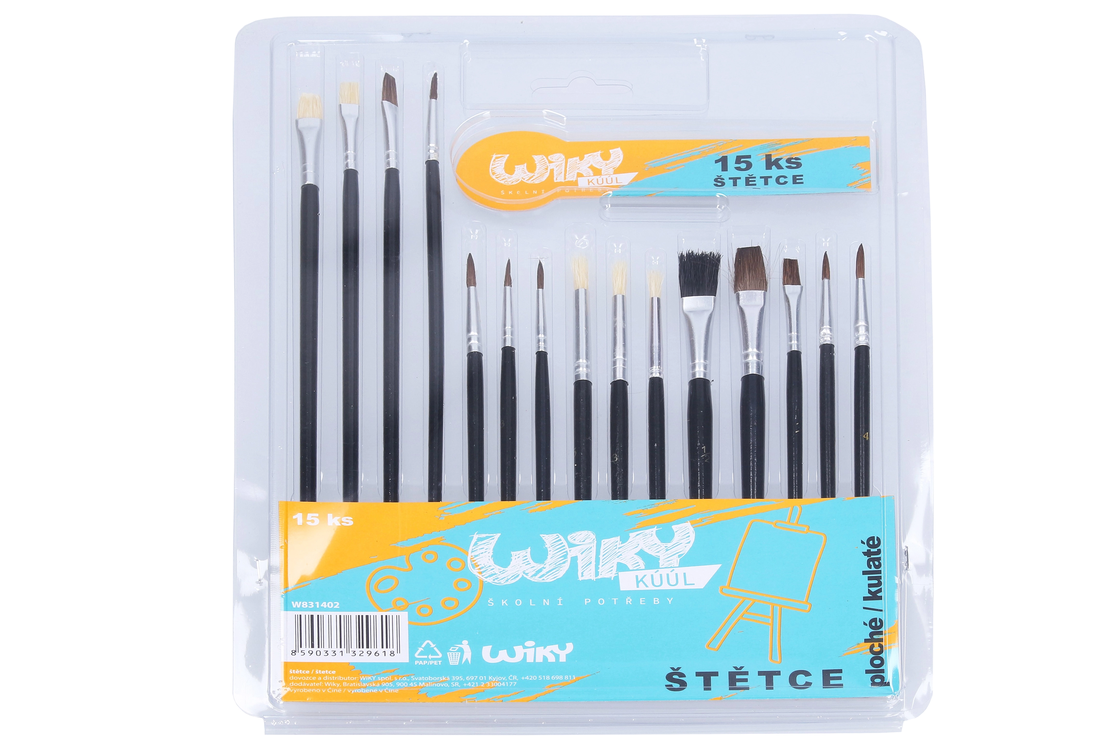 Atraskite universalumą, kurį suteikia teptukų rinkinys, 15 vnt. jūsų meniniams projektams – komplekte įvairūs dydžiai tiek plokštiems, tiek apvaliems potėpiams.
