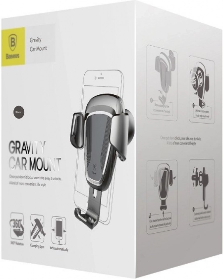 Mėgaukitės saugiu ir patogiu telefono naudojimu vairuojant. BASEUS laikiklio gravitacinis mechanizmas, įdėjus telefoną, automatiškai susiveržia ir patikimai jį fiksuoja, o minkštos pagalvėlės apsaugo įrenginį nuo subraižymo. Kompaktiška konstrukcija elegantiškos juodos spalvos lengvai montuojama ant daugumos vėdinimo grotelių.