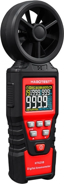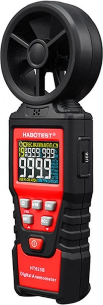 HABOTEST HT625B – patikimas anemometras su aštuonių menčių rotoriu ir jautriu guolių jutikliu stabiliems ir greitiems matavimams. Spalvotas didelės raiškos ekranas rodo reikšmes iki 9999, įskaitant baterijos indikatorių. Galite rinktis iš kelių greičio vienetų (m/s, km/h, mph, ft/s, mazgai) ir oro tūrio vienetų (CFM/CMM/CMS), todėl prietaisą lengvai pritaikysite savo darbo įpročiams.