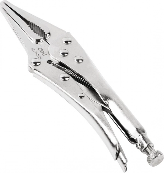 Ilgo fiksatoriaus replės Deli yra idealus įrankis kiekvienoms dirbtuvėms. Jos pagamintos iš aukštos kokybės anglinio plieno, kuris užtikrina ilgą tarnavimo laiką ir didelį tvirtumą. Dantyti žandai suteikia stabilų suėmimą ir medžiagų apdorojimą su padidintu tikslumu.