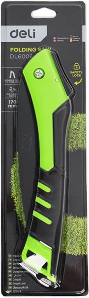 Kompaktiškas sulankstomas Deli Tools pjūklas greitam medienos pjovimui. Dėl 170 mm ilgio jis lengvai nešiojamas ir visada po ranka. Siūlo saugos užraktą nuo netyčinio susilankstymo, patvarų korpusą ir patogią ergonominę rankeną užtikrintam sukibimui net ilgesnio darbo metu.