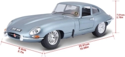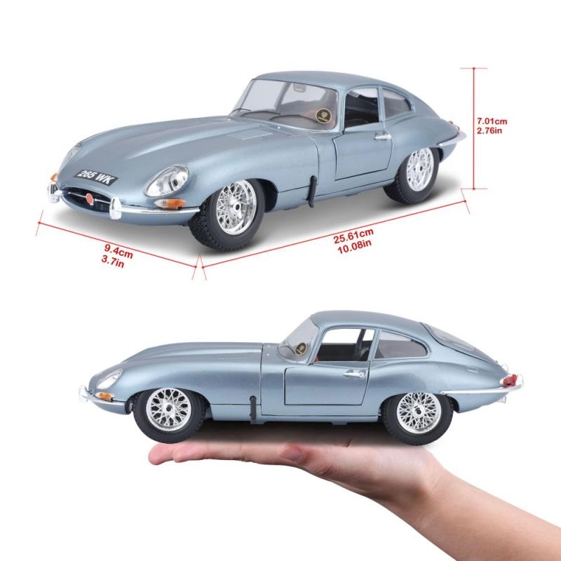 Die‑cast atlikimas su daugybe smulkių detalių, chromuotais elementais ir autentiškomis legendinio E‑Type proporcijomis.