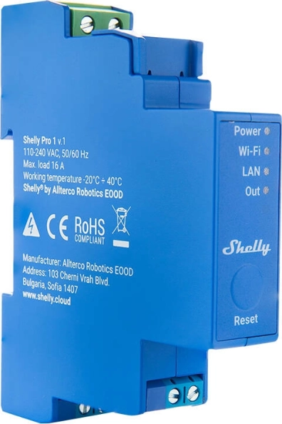 Išbandykite vieno kanalo relę Shelly Pro 1, palaikančią iki 16 A apkrovą. Ji suderinama su populiariais balso asistentais, tokiais kaip Google Assistant, Samsung SmartThings ir Amazon Alexa, todėl galite patogiai automatizuoti namų valdymą. Dėl bekontakčių (be potencialo) kontaktų galite saugiai ir lanksčiai valdyti skirtingas įtampas.