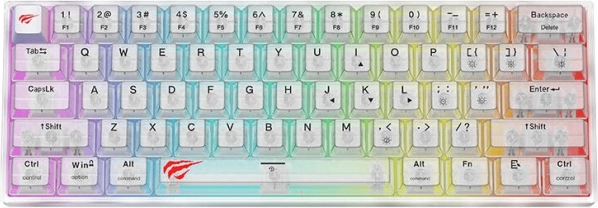 Įgaukite precizišką kontrolę savo žaidimams su Havit KB877L klaviatūra! Su 61 roll-over klavišu nereikės nerimauti dėl apribojimų intensyvaus žaidimo metu. Multimedijos klavišai suteikia patogų valdymą ir leidžia lengvai reguliuoti garsą ar muzikos atkūrimą. Įtraukiantis RGB apšvietimas pripildo jūsų stalą spalvų magija – galite rinktis iš 19 efektų.