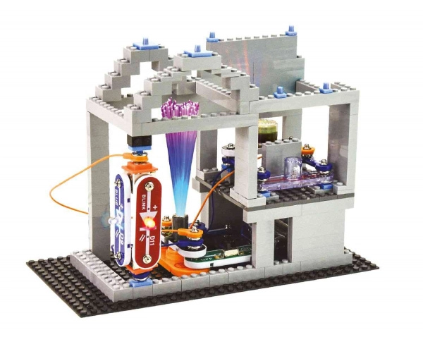 Pastatykite švyturį, šviesoforinę sankryžą, tiltą arba trijų aukštų namą. Su 200 detalėmis ir aiškiu vadovu vaikai žingsnis po žingsnio sukurs veikiančius elektroninius projektus.