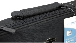 Sutvirtinti šonai ir minkštas putų sluoksnis saugo įrenginį nuo smūgių ir įbrėžimų, o fiksavimo dirželis tvirtai laiko kompiuterį vietoje.