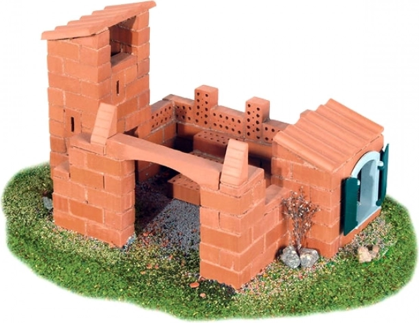 Konstruktorius pagamintas iš tikrų plytų, sujungiamų kukurūzų skiediniu.
