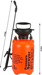 Patikimas 5 l sodo purkštuvas yra lengvas, patvarus ir paruoštas kasdieniam darbui. Reguliuojamas antgalis leidžia perjungti nuo smulkios miglos iki vientisos srovės, plati pildymo anga palengvina papildymą, o tūrio skalė užtikrina tikslų dozavimą. Dėl didelės stūmoklio eigos greitai sukursite iki 3 barų slėgį ir galėsite dirbti sklandžiai bei efektyviai.