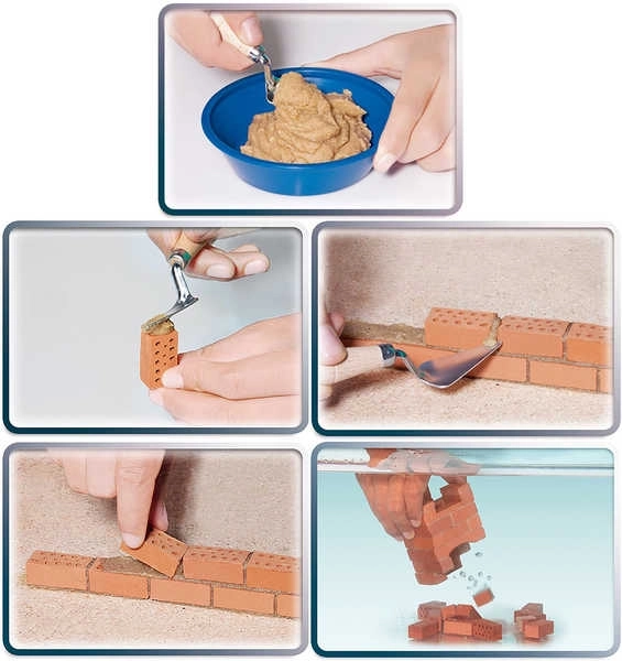 - Komplekte yra 200 detalių, įskaitant tikras plytas ir kukurūzinius skiedinius.