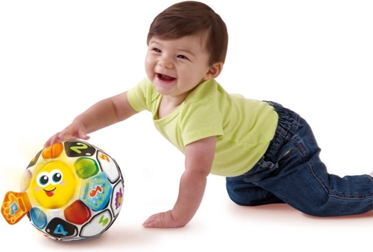 Dėl savo funkcijų kamuoliukas gali riedėti vaikų akivaizdoje, kas patraukia jų dėmesį ir skatina stebėti, ropoti bei žaisti. Šis spalvingas futbolo kamuolys su įvairiomis tekstūromis ir garso efektais ne tik lavina jutiminį suvokimą, bet ir suteikia lytėjimo stimulaciją dėl švelnaus pliušinio paviršiaus. Šviesos ir garso efektai, papildyti šviečiančiu veiduku ir oranžiniais mygtukais, padeda pažinti spalvas.