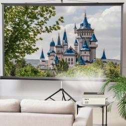 Sukurkite namų kiną su lengvu ir kompaktišku projektoriumi, kuris rodo iki 100" vaizdą 16:9 formatu. Rankinis fokusavimas ir pridėtas stovelis padeda greitai suderinti idealią dydžio bei kampo kombinaciją. Dėl palaikomo Full HD 1920 × 1080 px signalo gausite švarų, detalių kupiną vaizdą.