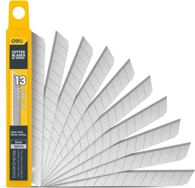 Universalus Deli Tools peilis su 9 mm ašmeniu idealiai tinka tiksliam pjovimui ir yra praktiškas įvairiose situacijose. Tiekiamas su 10 atsarginių ašmenų ilgam naudojimui.