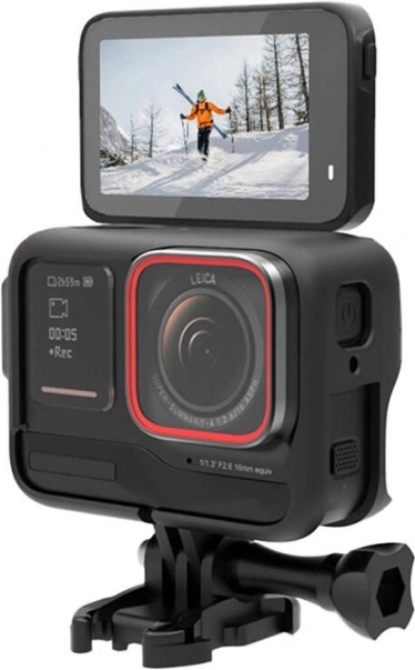 Korpusas sukurtas specialiai INSTA360 ACE PRO, todėl neuždengia mygtukų, prievadų ar garsiakalbio ir leidžia visiškai naudoti atverčiamą ekraną.